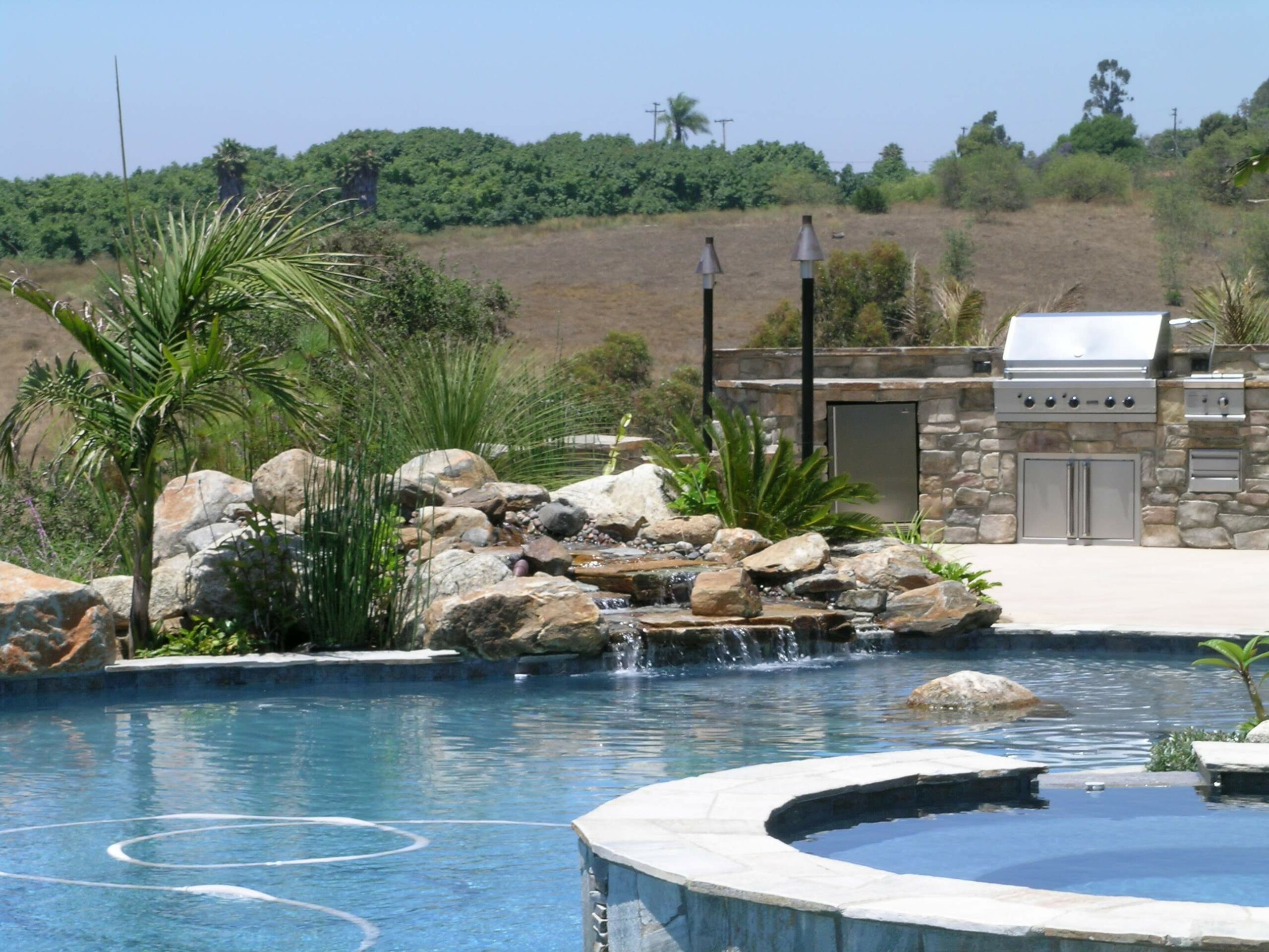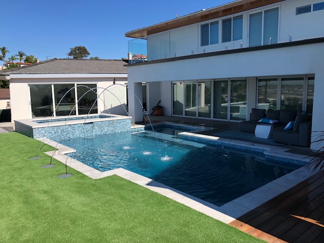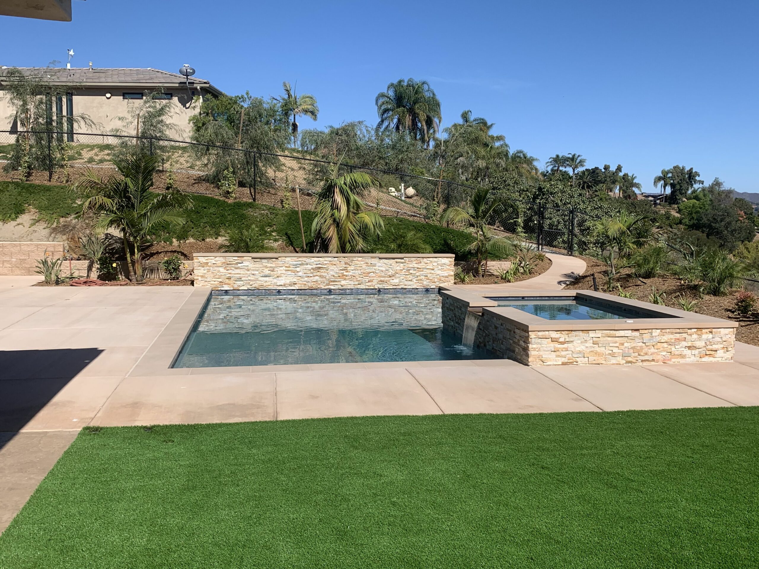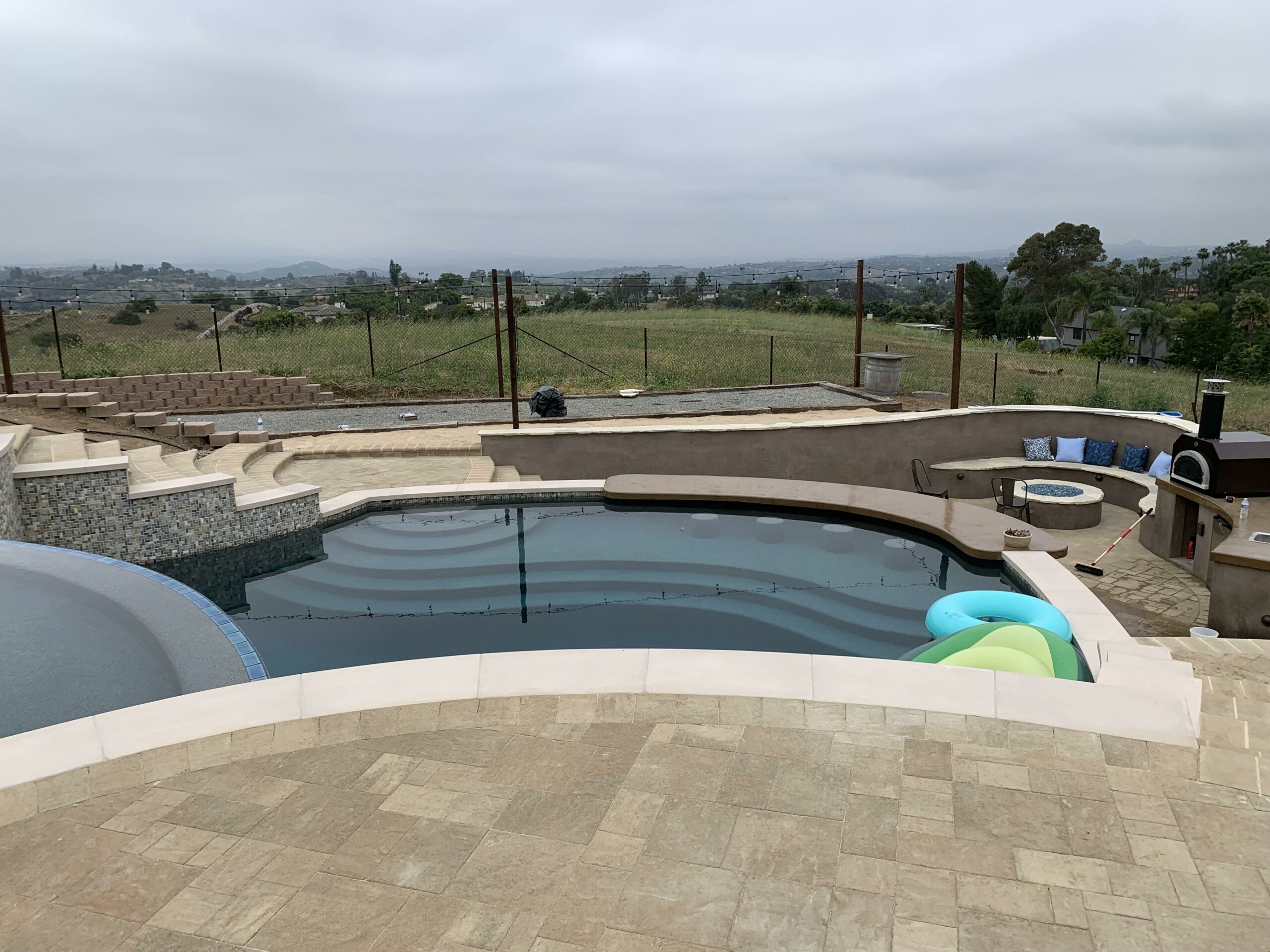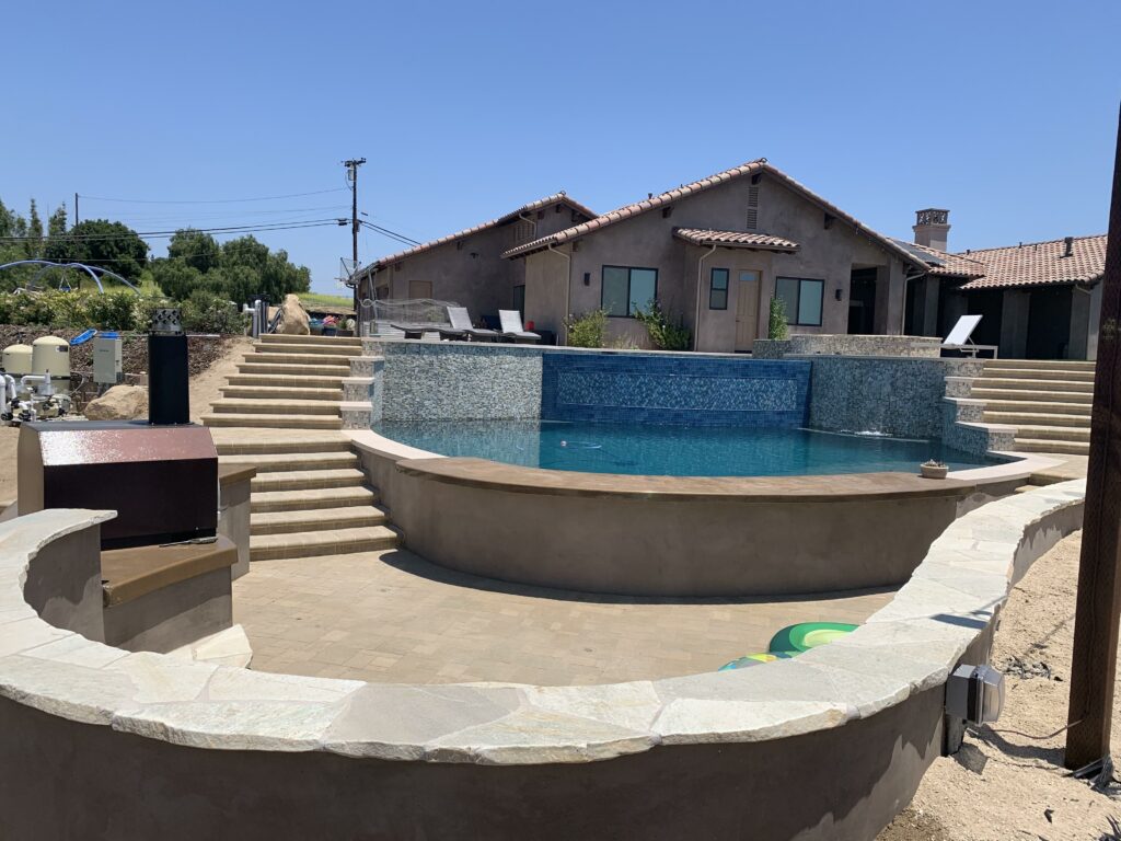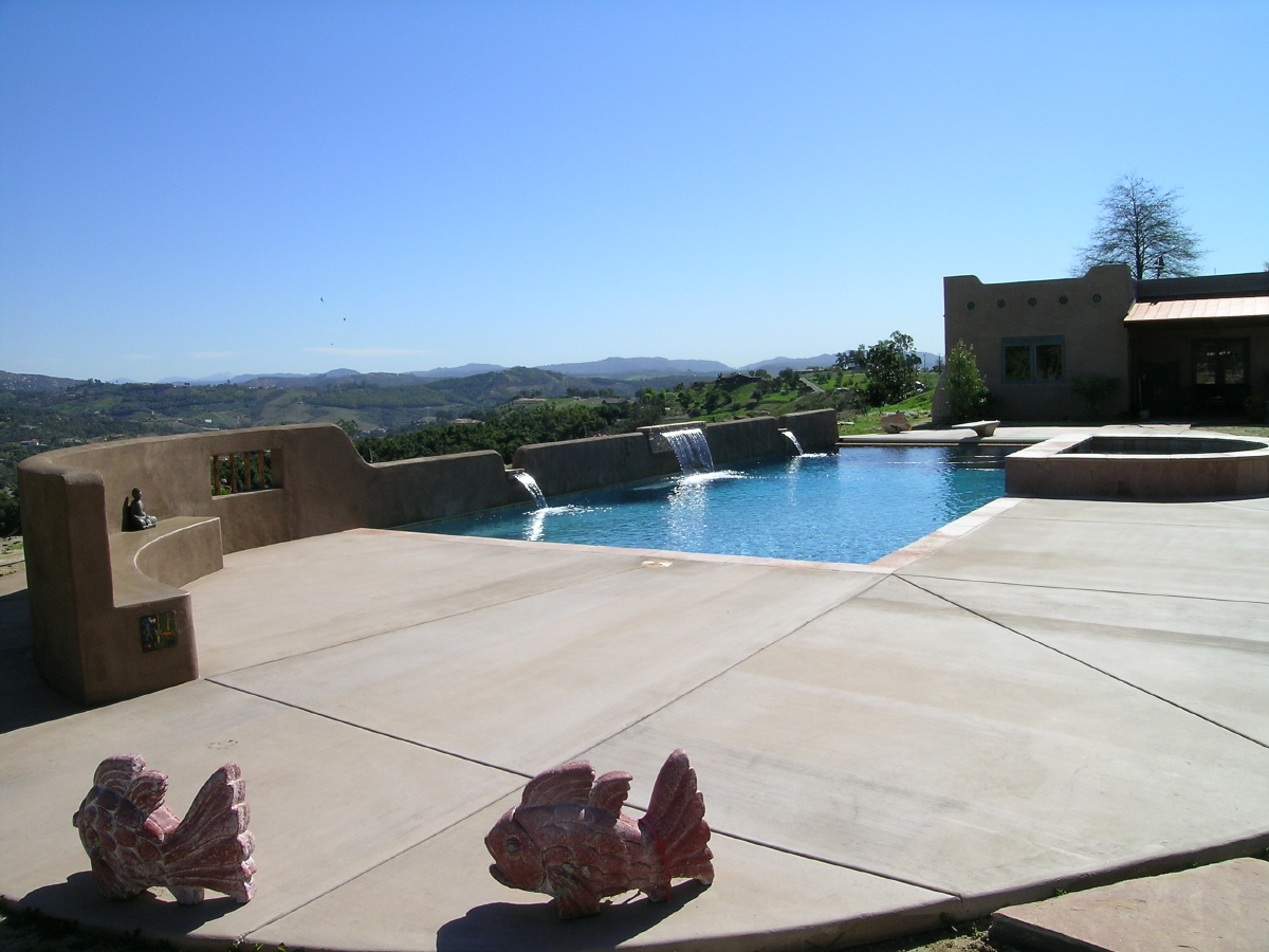 This includes but is not limited to: Free-standing pools and spas, vanishing edges, vaulted pools and spas, water-walls, waterslides, waterfalls, water-features, artistic masonry, minor grading, BBQ’s, fire-pits, fireplaces, retaining walls, irrigation, drainage, and decking.