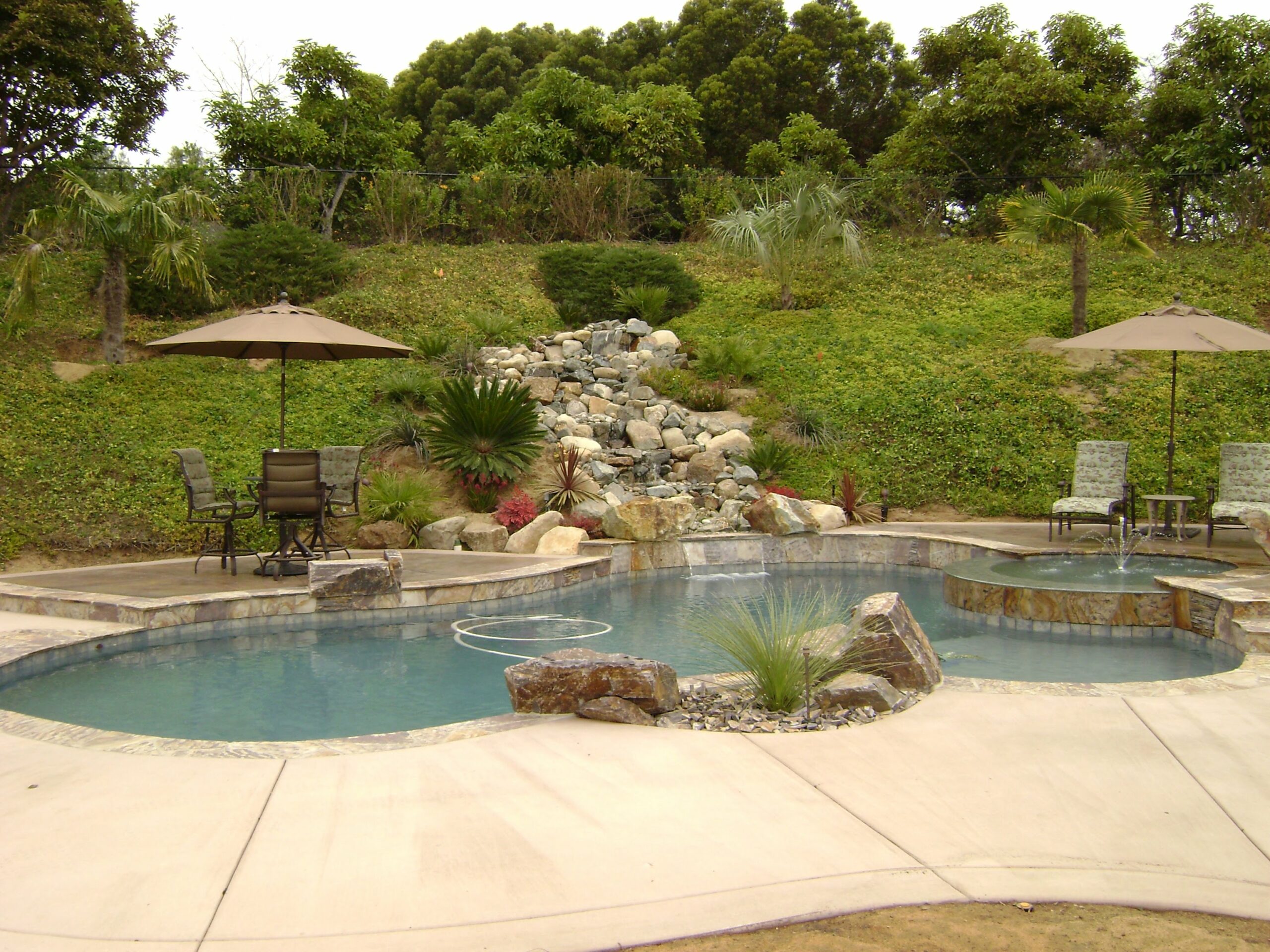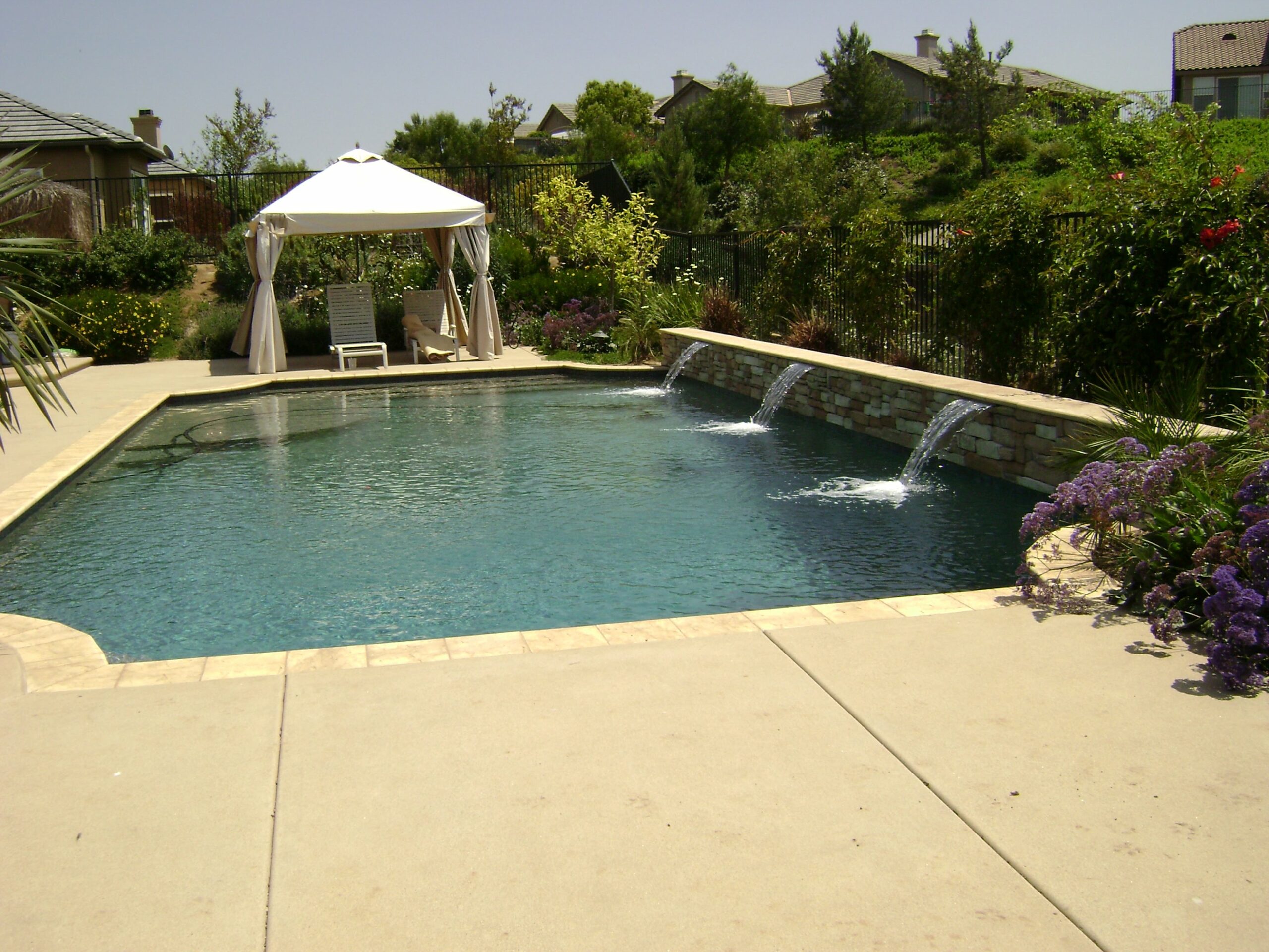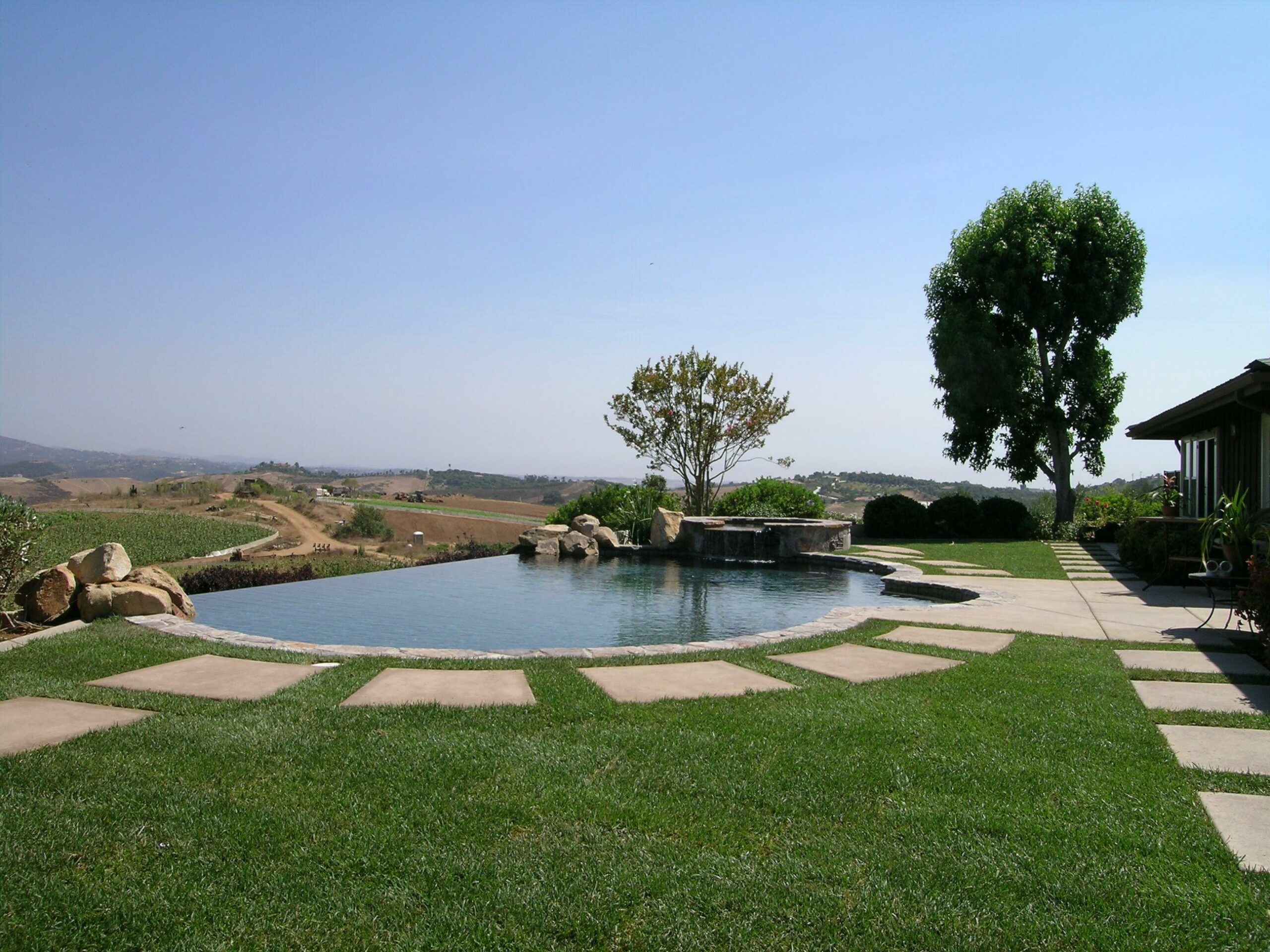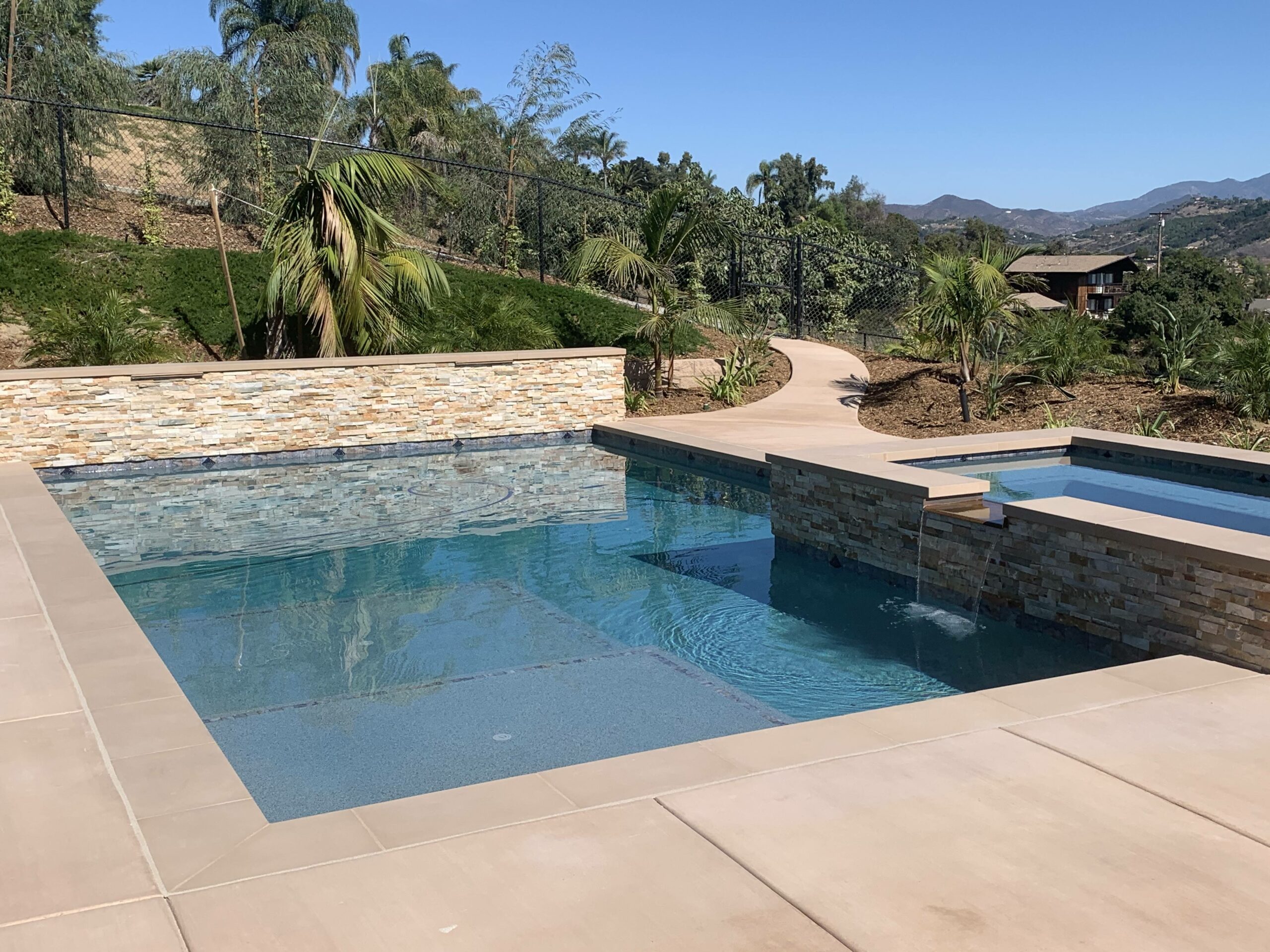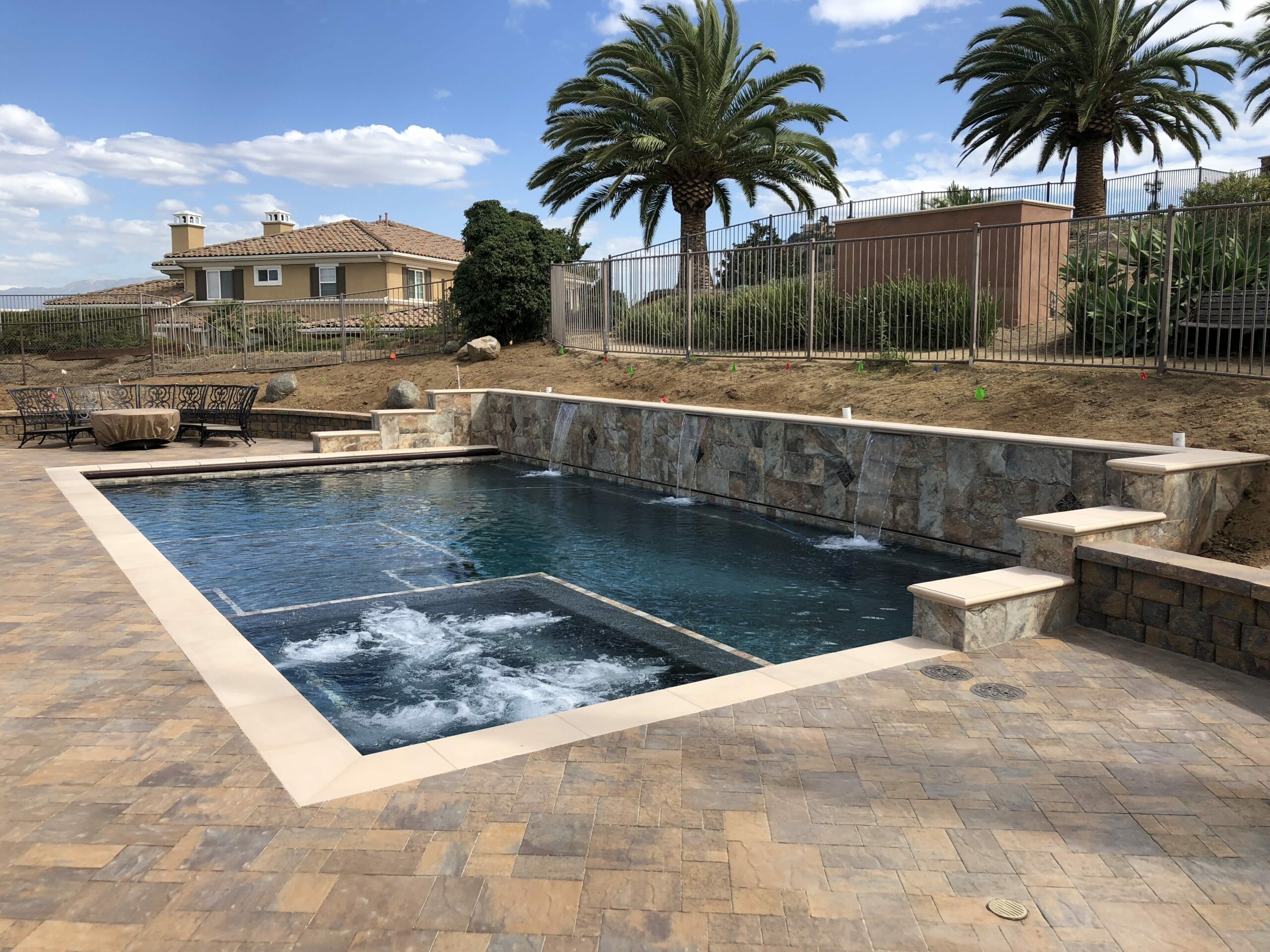 This includes but is not limited to: Free-standing pools and spas, vanishing edges, vaulted pools and spas, water-walls, waterslides, waterfalls, water-features, artistic masonry, minor grading, BBQ’s, fire-pits, fireplaces, retaining walls, irrigation, drainage, and decking.