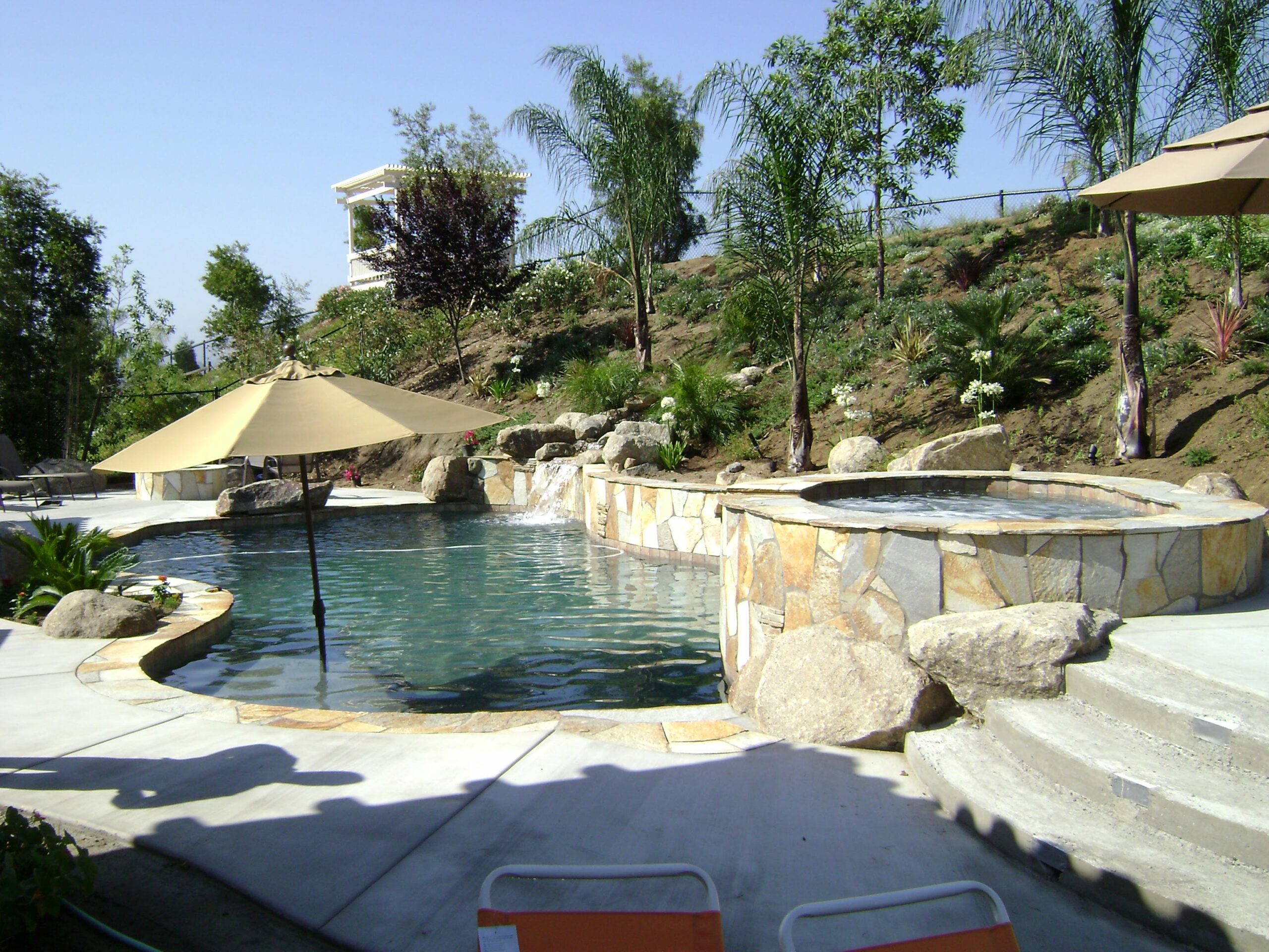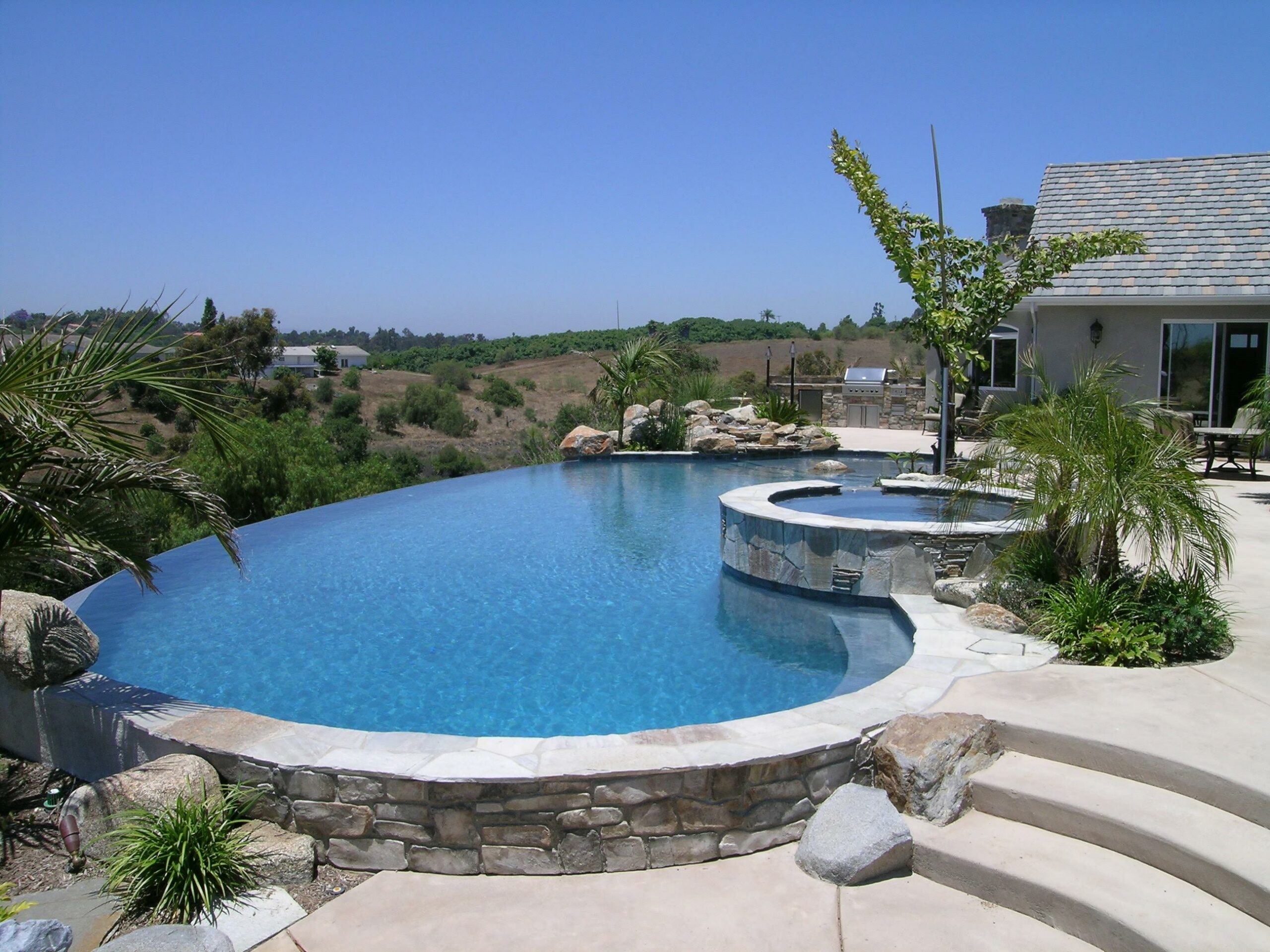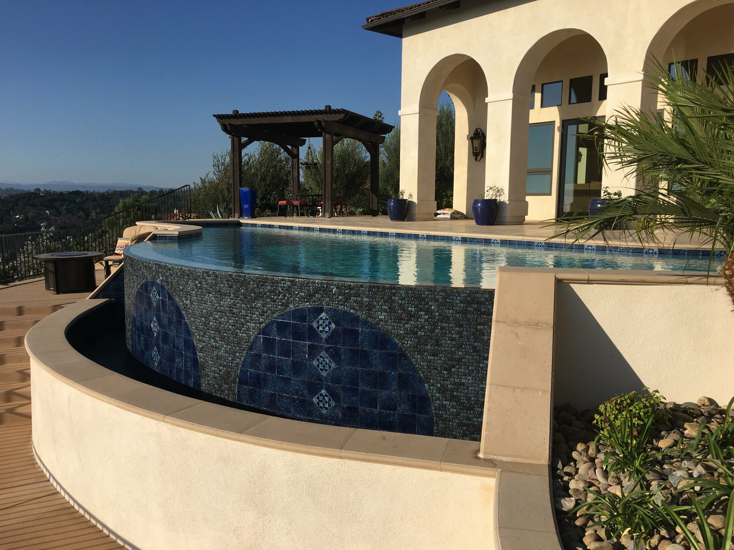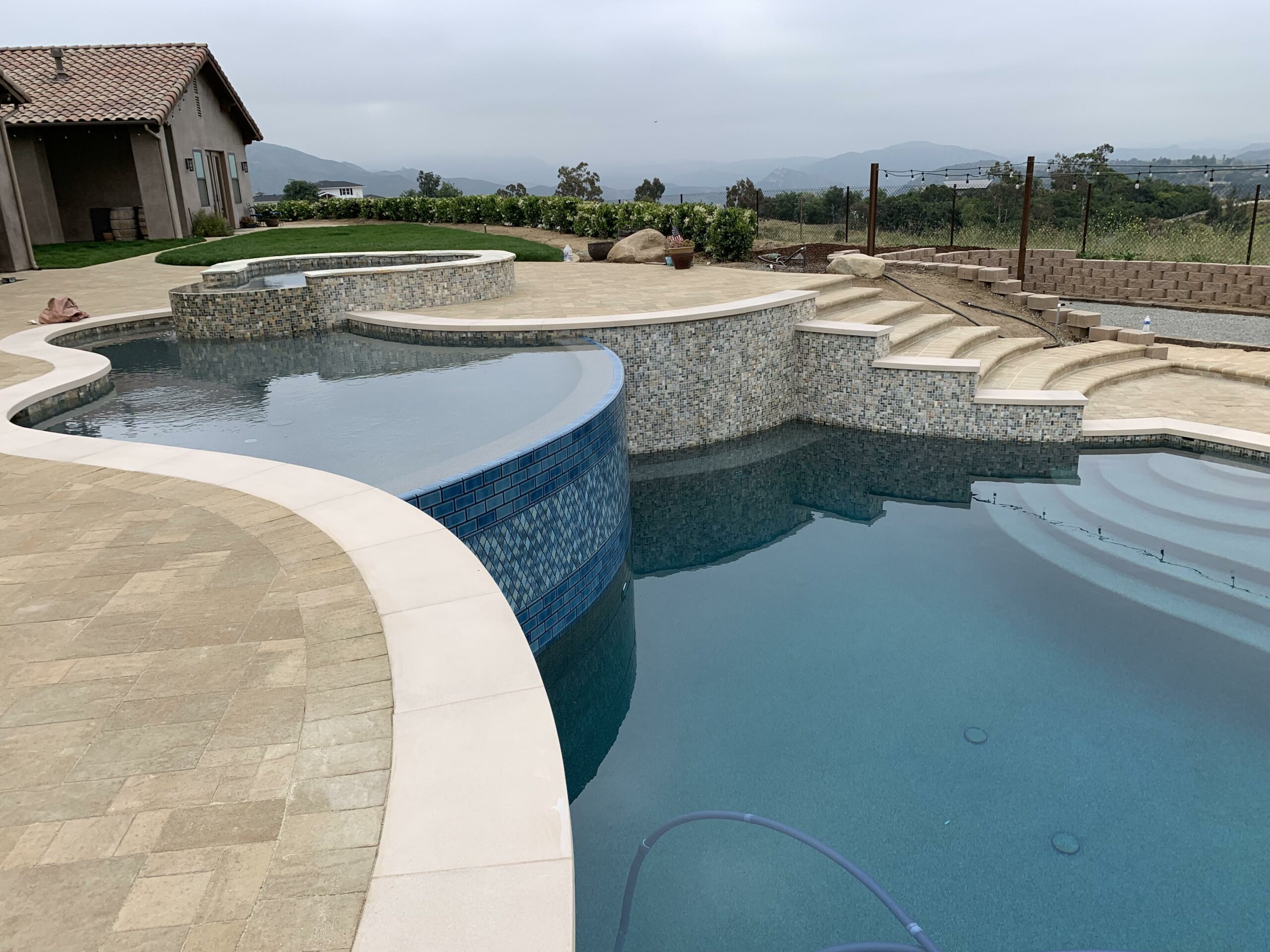 This includes but is not limited to: Free-standing pools and spas, vanishing edges, vaulted pools and spas, water-walls, waterslides, waterfalls, water-features, artistic masonry, minor grading, BBQ’s, fire-pits, fireplaces, retaining walls, irrigation, drainage, and decking.