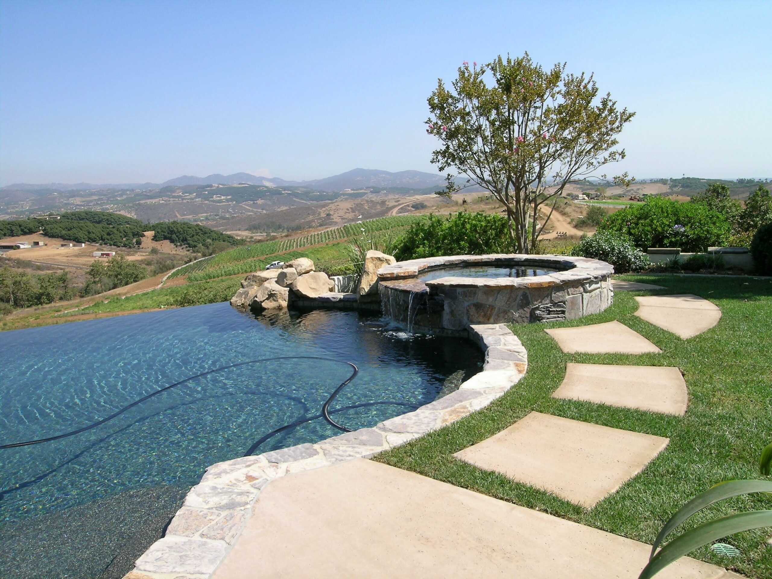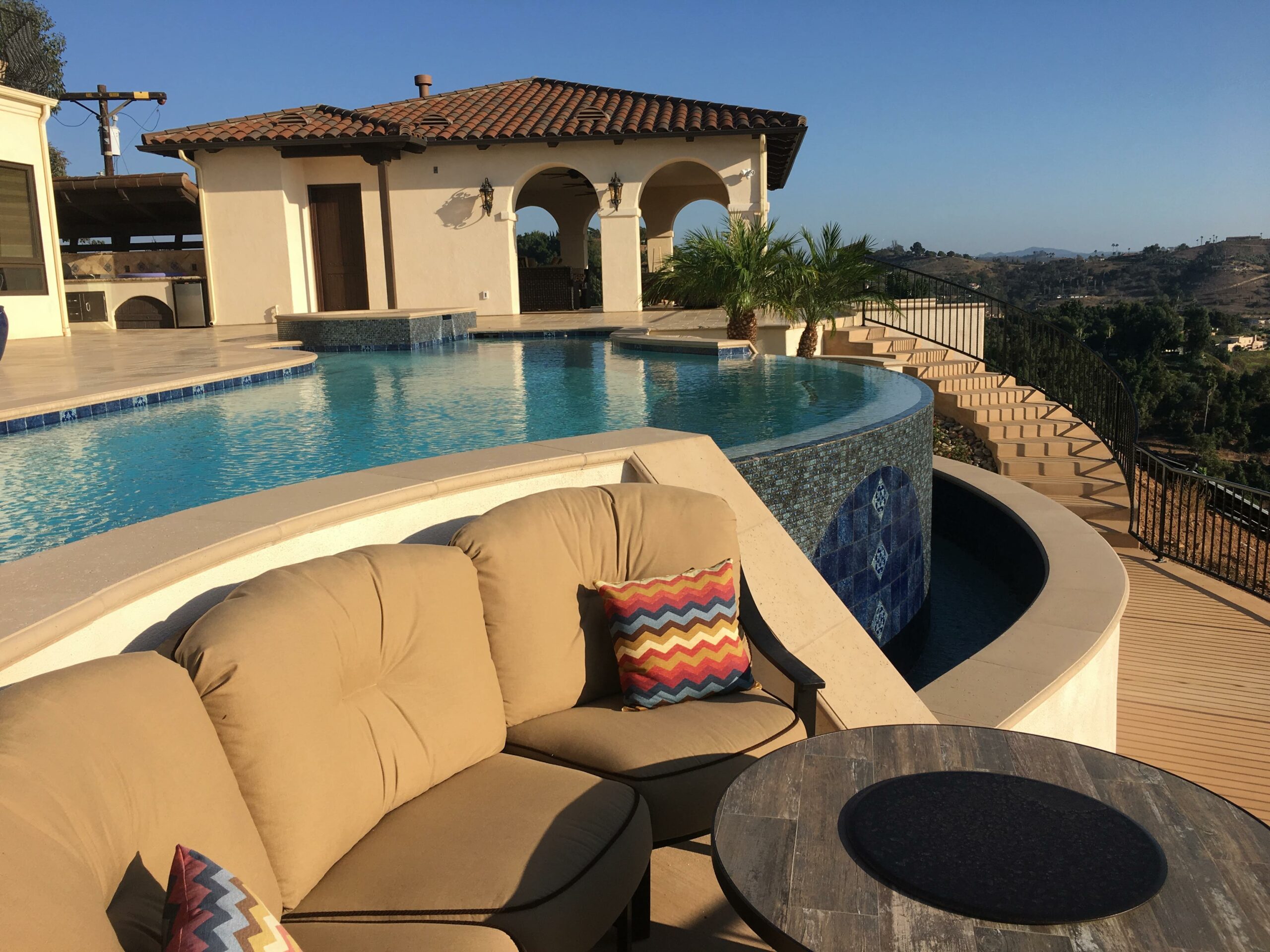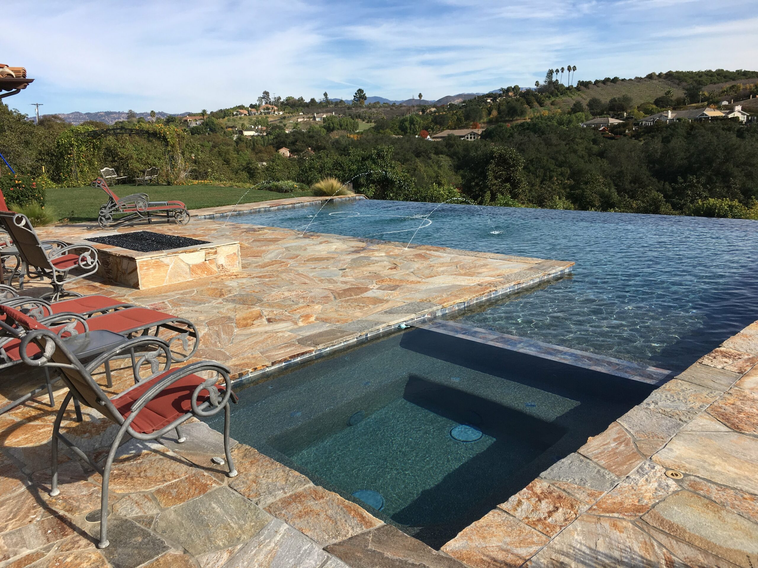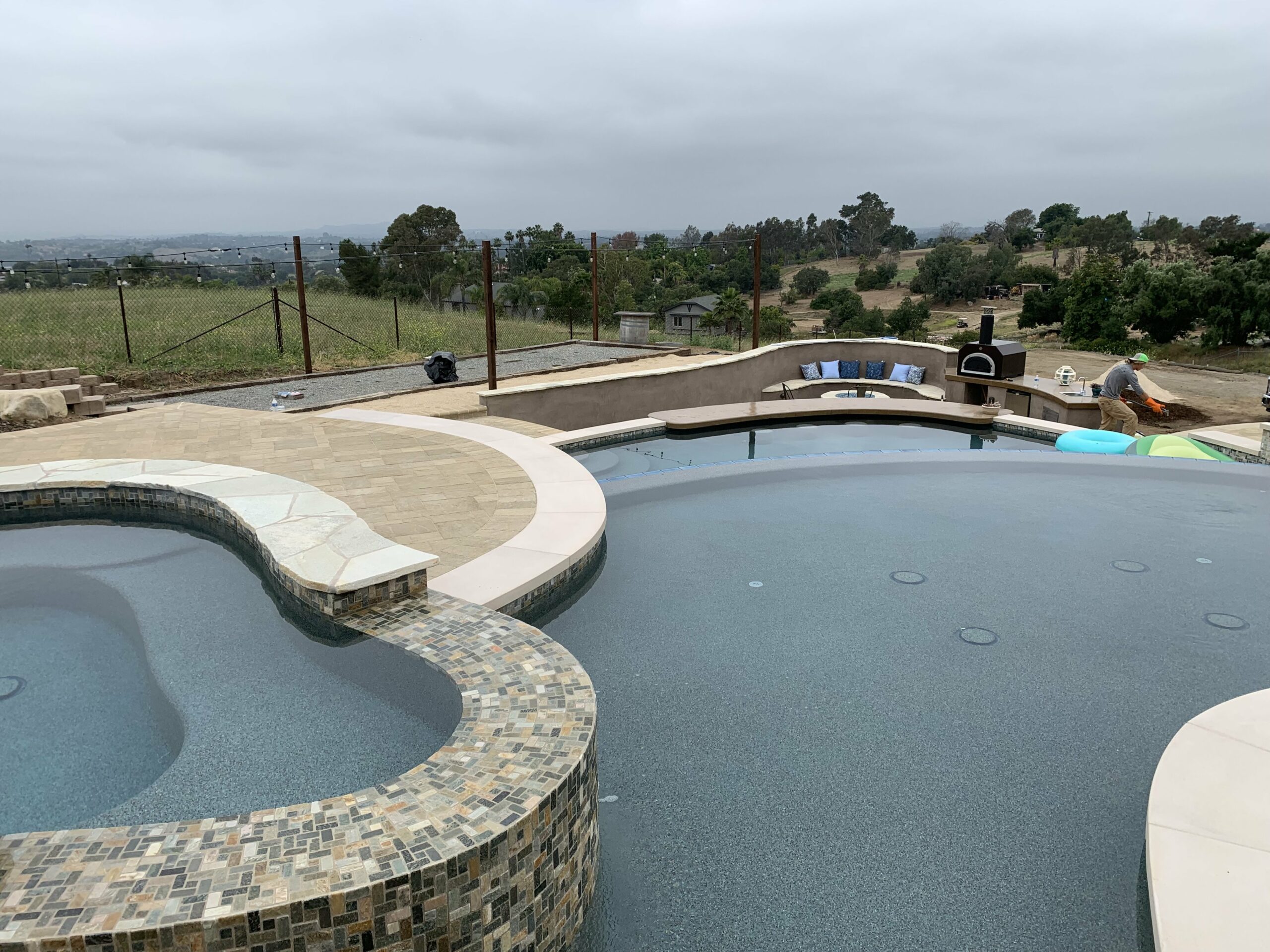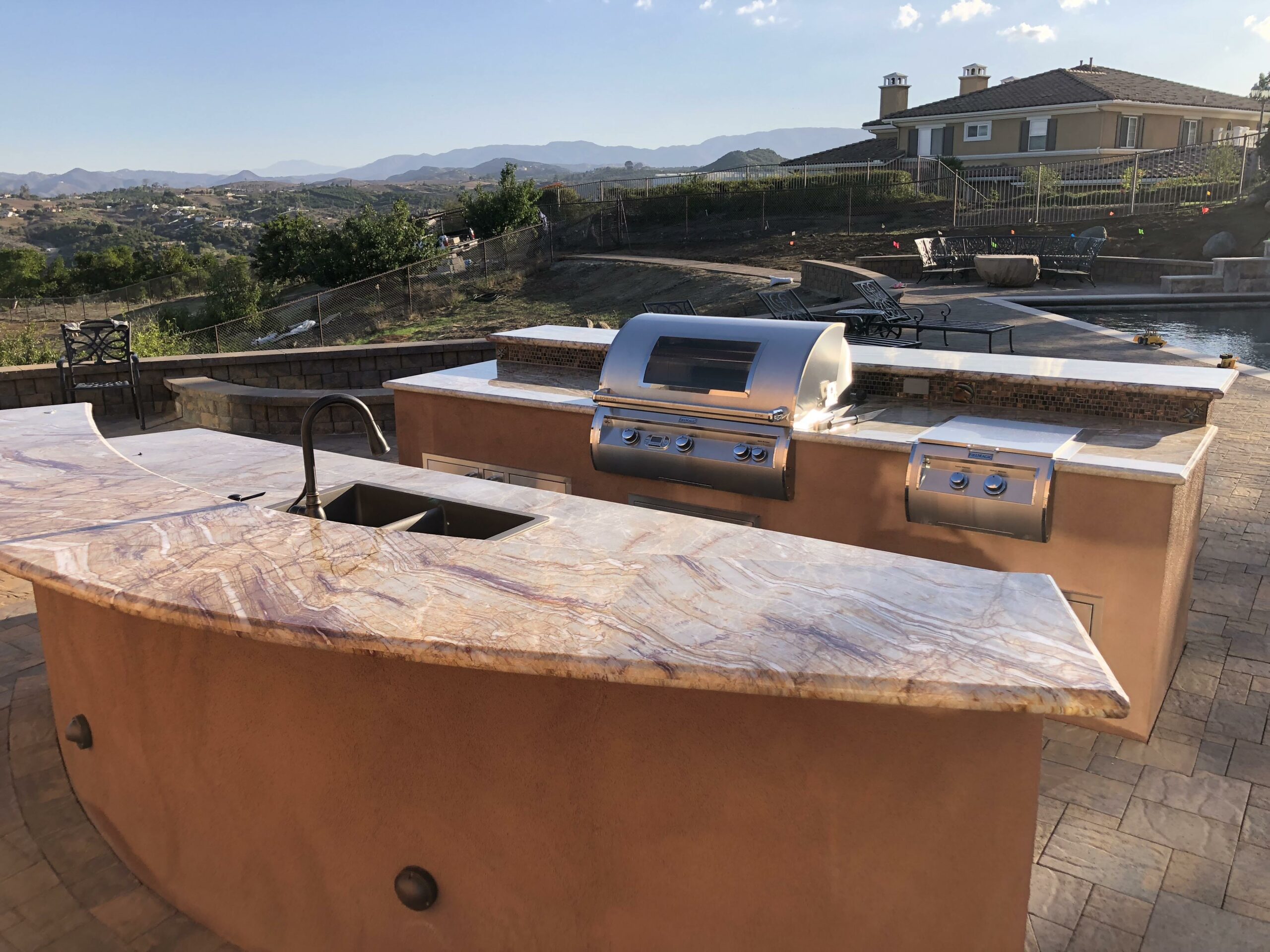 This includes but is not limited to: Free-standing pools and spas, vanishing edges, vaulted pools and spas, water-walls, waterslides, waterfalls, water-features, artistic masonry, minor grading, BBQ’s, fire-pits, fireplaces, retaining walls, irrigation, drainage, and decking.